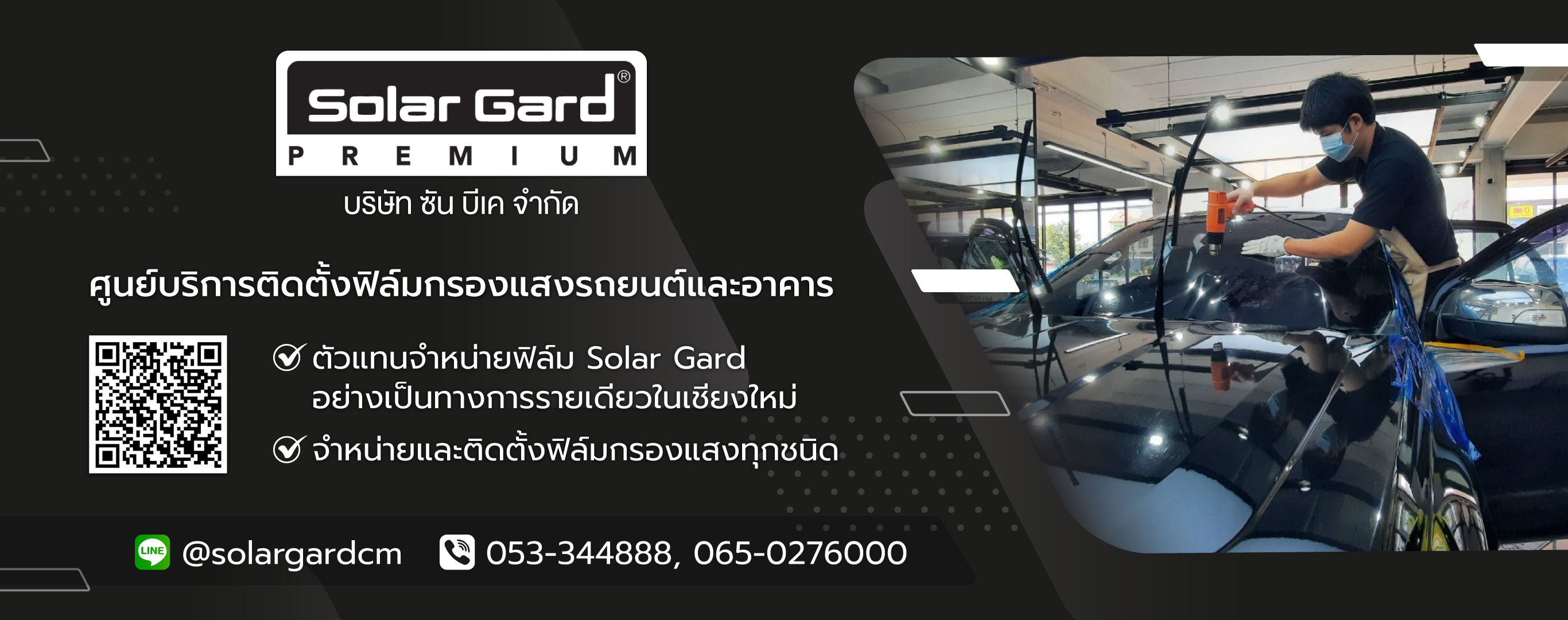 - เราเป็นตัวแทนจำหน่ายฟิล์มกรองแสง Solar Gard อย่างเป็นทางการรายเดียวในเชียงใหม่ มั่นใจมีฟิล์มให้เลือกครบทุกรุ่นได้ของแท้ 100% จากต้นแหล่ง